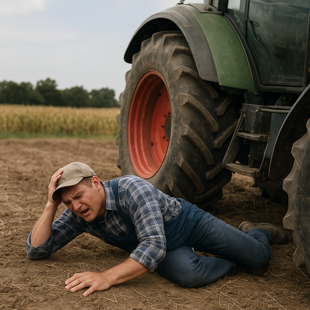 - Nieprawidłowa obsługa ciągnika – brak szkolenia lub pomijanie instrukcji obsługi prowadzi do uszkodzeń ciała podczas wsiadania, wysiadania czy manewrowania.